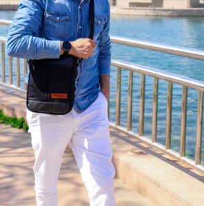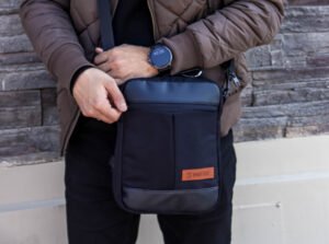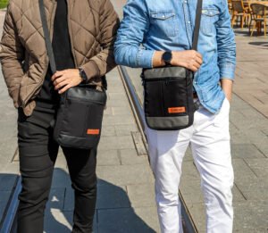 - تحتوي على حزام طويل لارتدائها أثناء السفر والتجول، كما تحتوي على مقبض عمودي ناعم لسهولة حملها في يدك.