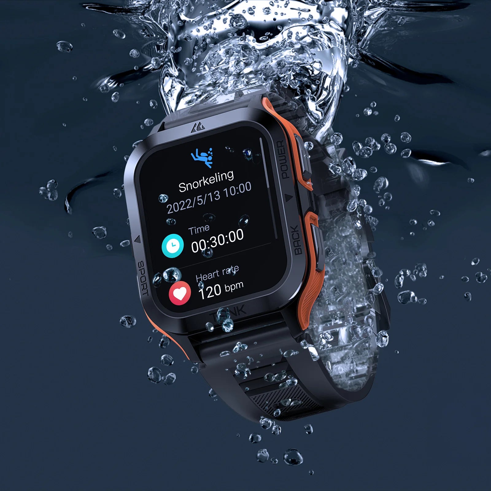 كما نجحت ساعة KOSPET TANK M2 في اجتياز اختبار تصنيف IP69K الصارم، بحيث ترافقك الساعة الذكية المتينة أثناء ممارسة الرياضات والأنشطة المائية اليومية، مثل السباحة والغوص وركوب الأمواج وما إلى ذلك.